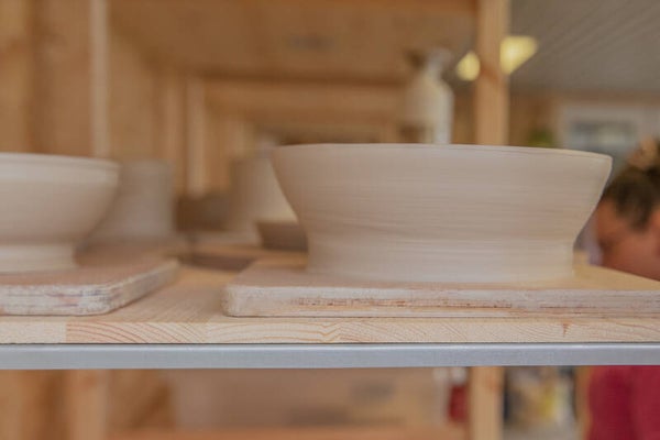 In de eerste les gaan we de potjes draaien en in de tweede les gaan we ze afdraaien en decoreren (afwerken).